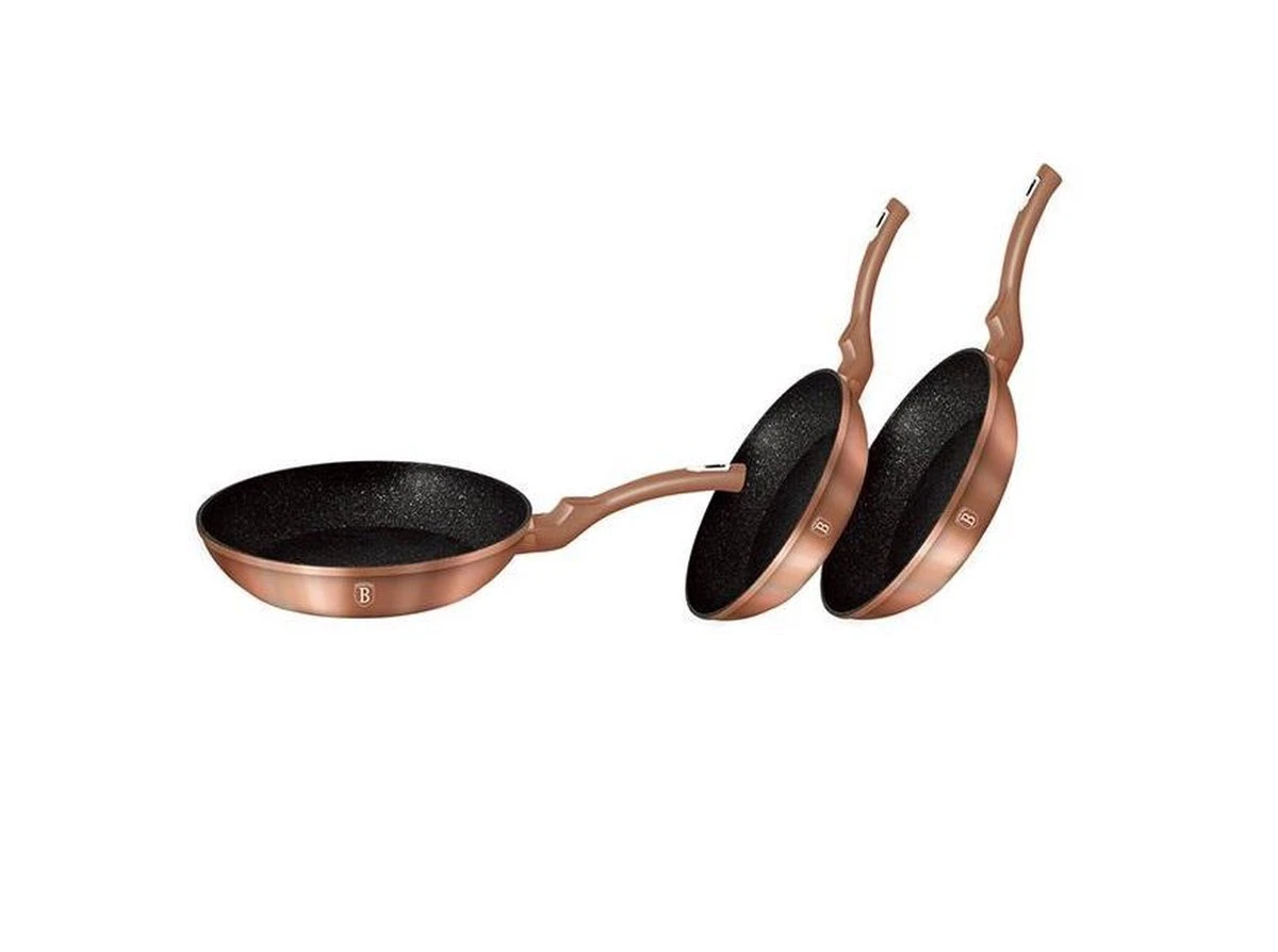 Met deze koekenpannen sta je stijlvol te koken. De pannen zijn roségoudkleurig, waardoor ze echte blikvangers in je keuken zijn. Dankzij de speciale bodem wordt de warmte goed verspreid, hierdoor bespaar je energie.