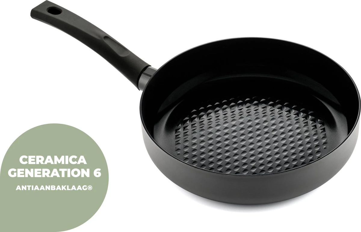 Aangezien de keramische antiaanbaklaag Ceramica Generation Six ®, veel sterker is dan een traditionele antiaanbaklaag, kan het gebruik van een metalen voorwerp in de pan niet zoveel kwaad. Let op! Het kan bij zeer frequent en hard gebruik van metalen voorwerpen in de pan, dat de antiaanbaklaag eerder aan slijtage onderhevig zal zijn.