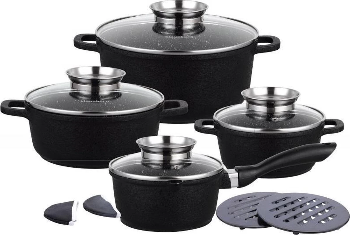 Klausberg 7360 – Pannenset 12 Delig – Zwart – Marmer Coating