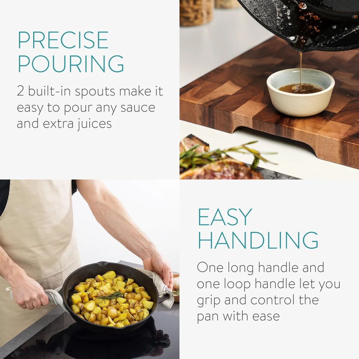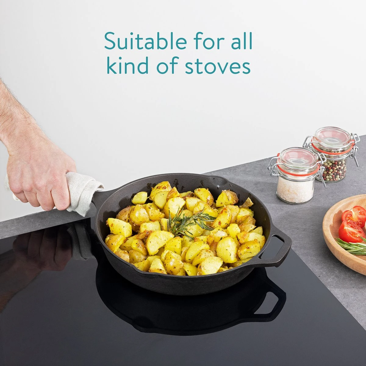 Navaris Gietijzeren Koekenpan – Braadpan Van Gietijzer – Ronde Skillet – Geschikt Voor Alle Warmtebronnen – Ø 25 Cm – Ovenbestendig Tot 260?graden