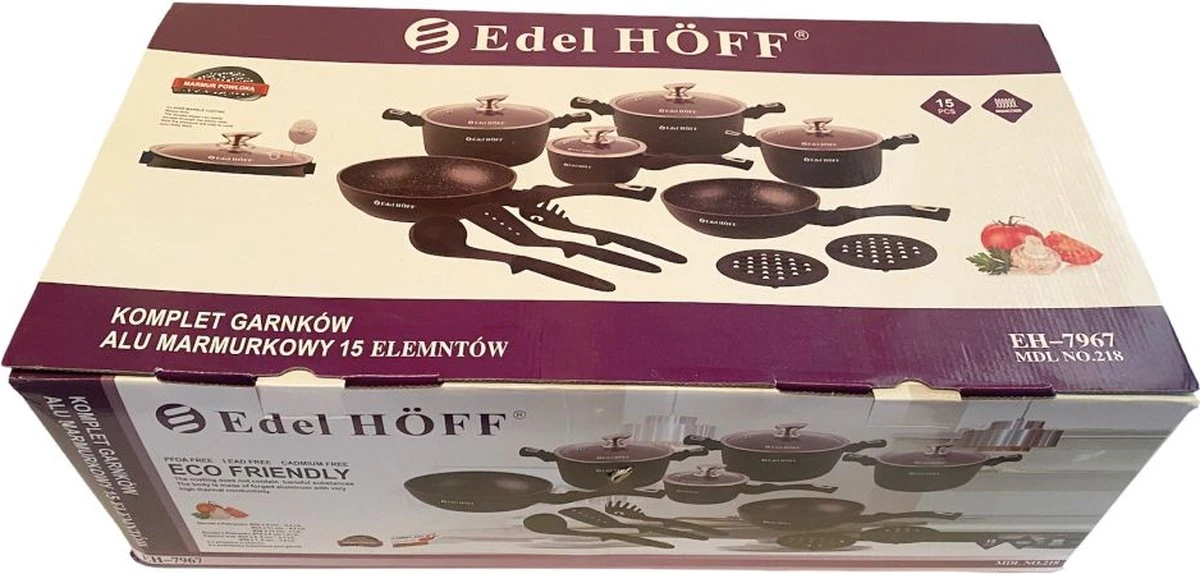Pannenset – Kookpan – Inductie – 15 Delig Marmeren Coating – Zwart