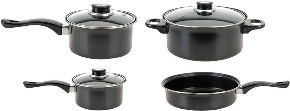 Redcliffs 4-delige Pannenset – Met 3 Glazen Deksels – Anti-Aanbaklaag – Camping/ Kamperen – Steelpannen, Hapjespan, Kookpan